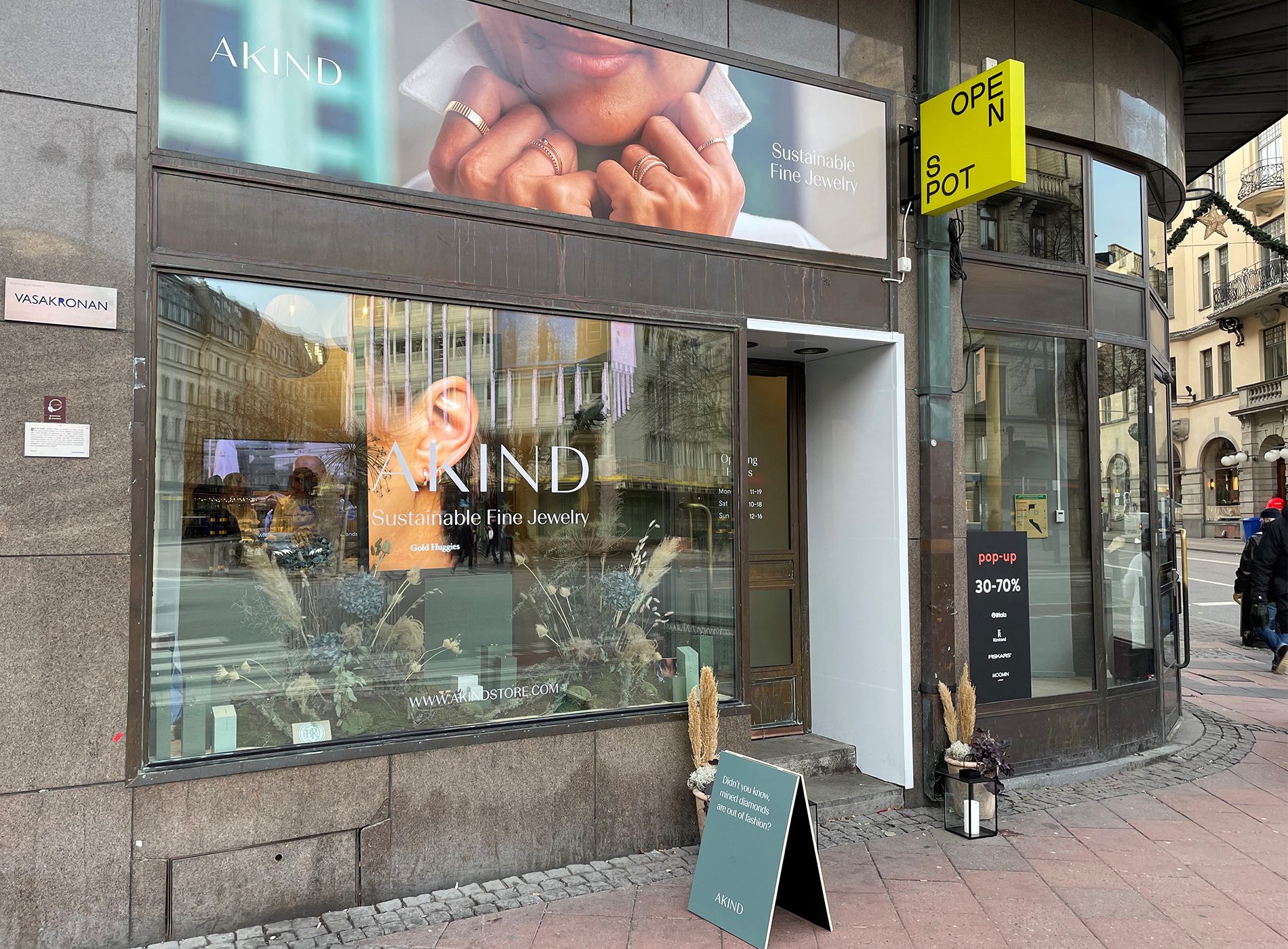 Med återvunnet guld och labbodlade diamanter har Akind blivit en hållbar uppstickare i smyckesbranschen. Sedan starten 2019 har företagets försäljning på nätet nått rekordsiffror. Nu provar e-handlaren fysisk etablering i Vasakronas Open Spot, en pop up-butik vid Stureplan. Allt för att öka sin synlighet och stärka sitt varumärke.