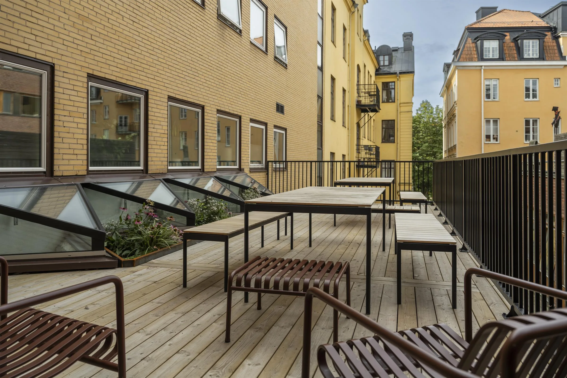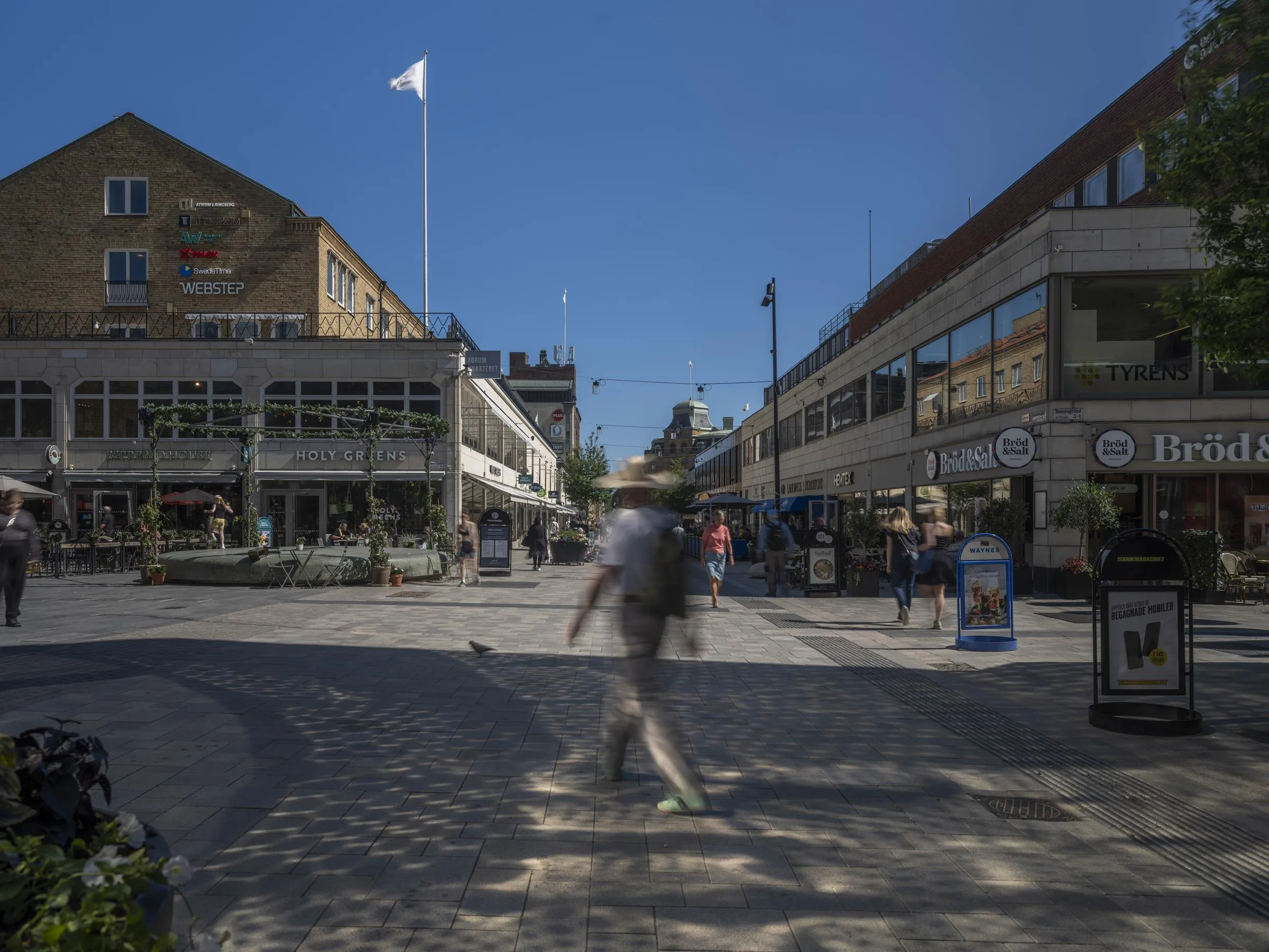 Uppsalas livligaste gågata med butiker, restauranger, caféer och gym ligger strax utanför. Området, inklusive Forumtorget, är perfekt för möten och avkoppling. Konst, historiska platser och kulturella inslag bidrar till en trivsam atmosfär. Längs Fyrisån finns chans till en stunds avkoppling eller motion för att fylla på till resten av dagen.