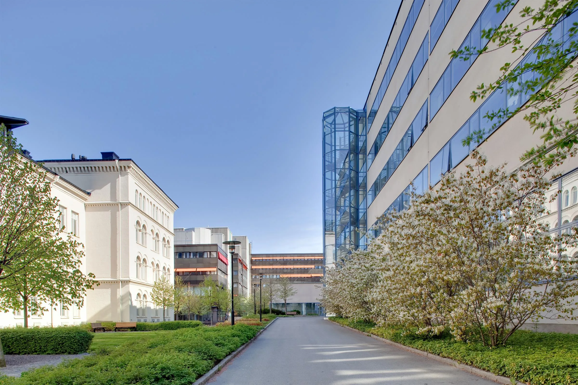 1. Karlahuset, den långa byggnaden längs Karlavägen, erbjuder flexibla och effektiva lokaler