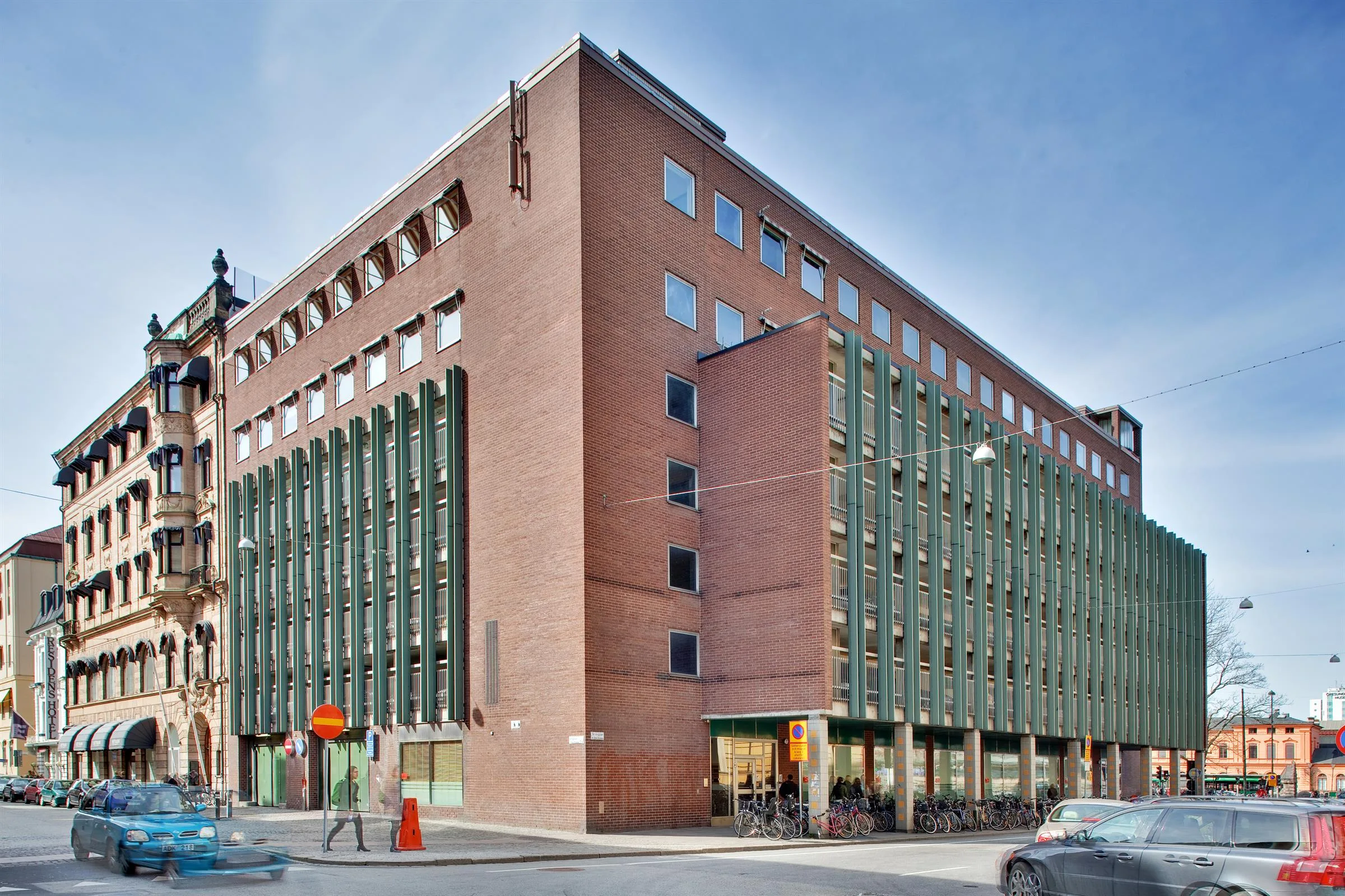 Parkering fungerar för bilar under 2 meter. Garaget är utrustat med ett antal laddplatser för elbilar.