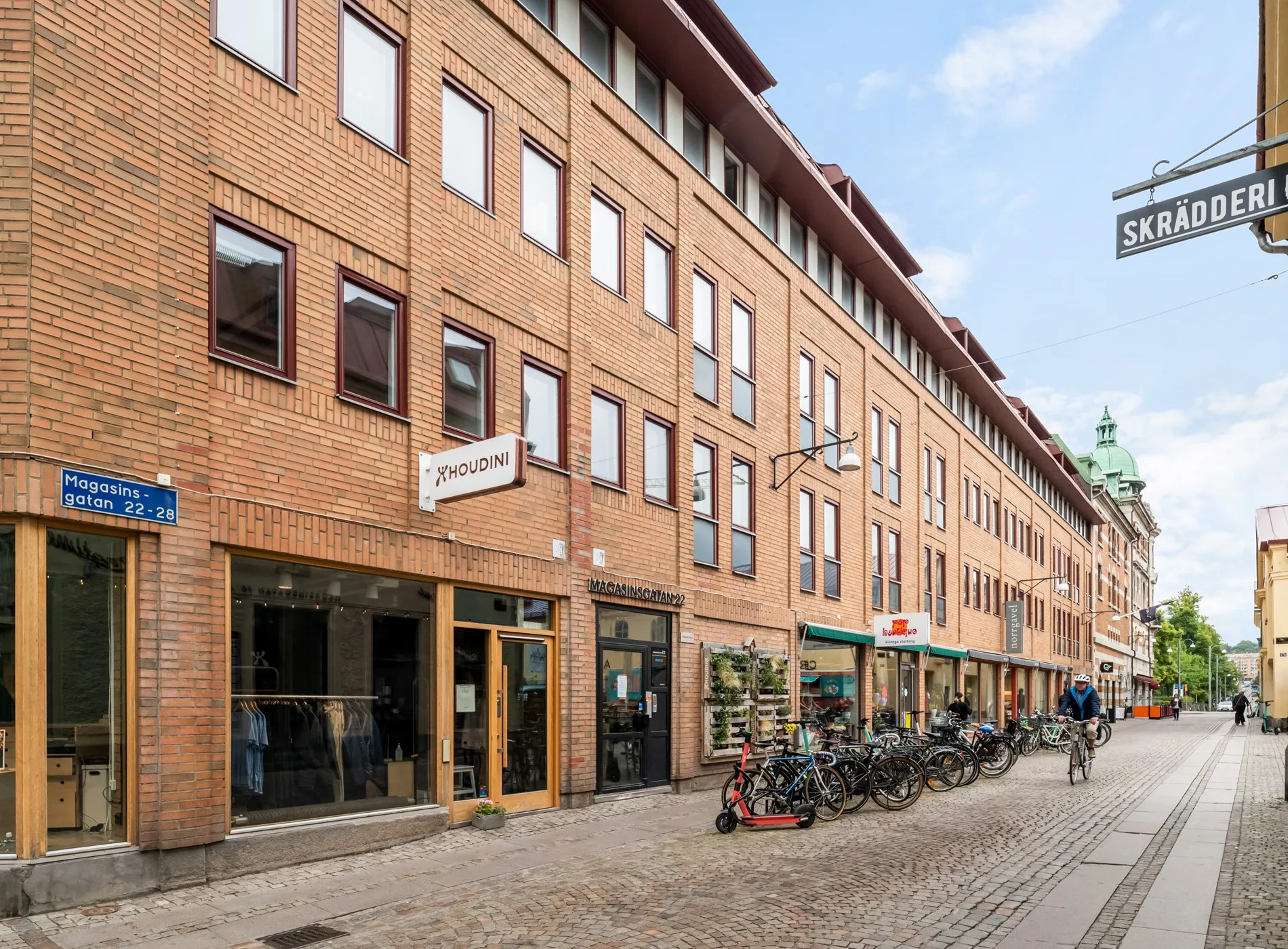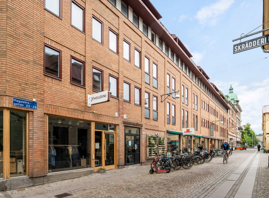 Fastigheten Biskopen är belägen mitt på Magasinsgatan, en gata som andas historia och erbjuder en unik atmosfär. Med ett brett utbud av allt ifrån trendiga inredningsbutiker och spännande lunchrestauranger till retro second hand-shopping är Magasinsgatan en av Göteborgs mest levande gator.