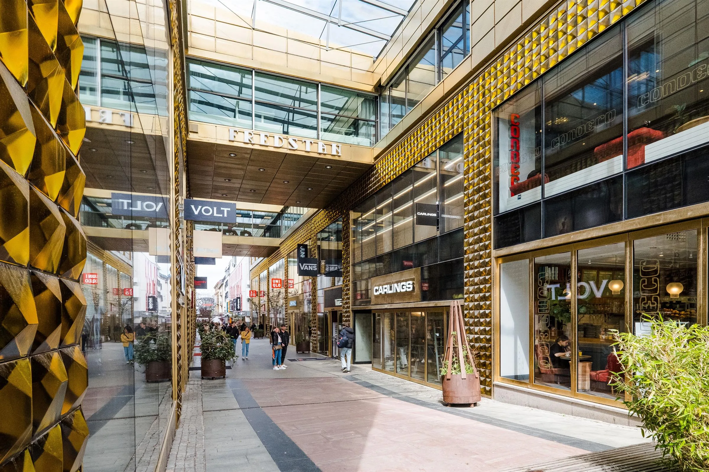 2016 öppnade flera nya butiker längs den södra delen av Fredsgatan. Efter omfattande renoveringar erbjuder nu gatan unika tvåplansbutiker med imponerande shopfronts på över fyra meter. Uttrycket och designen här är något alldeles extra. Den glittrande portalen med butiker som Best of Brands, Zara Home, Superdry, Volt med flera bjuder på en shoppingupplevelse utöver det vanliga.