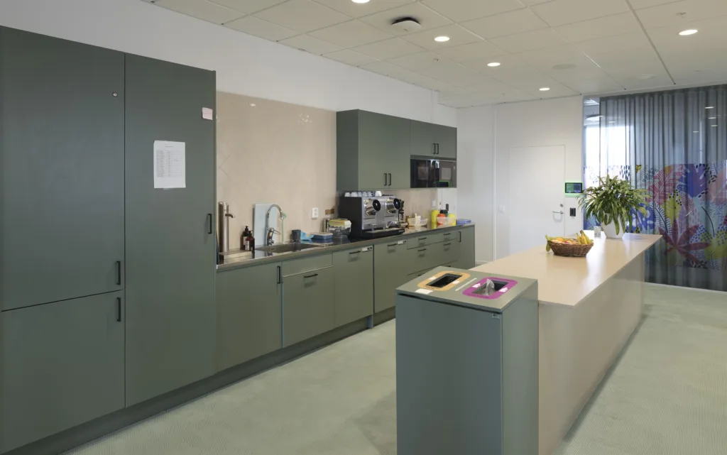 Byggnaden är LEED Platina-certifierad och erbjuder en modern, energieffektiv och hållbar arbetsmiljö – med fokus på trivsel, hälsa och långsiktighet.