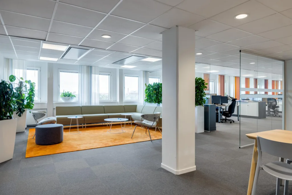 – Gemensam reception och stora loungeytor.