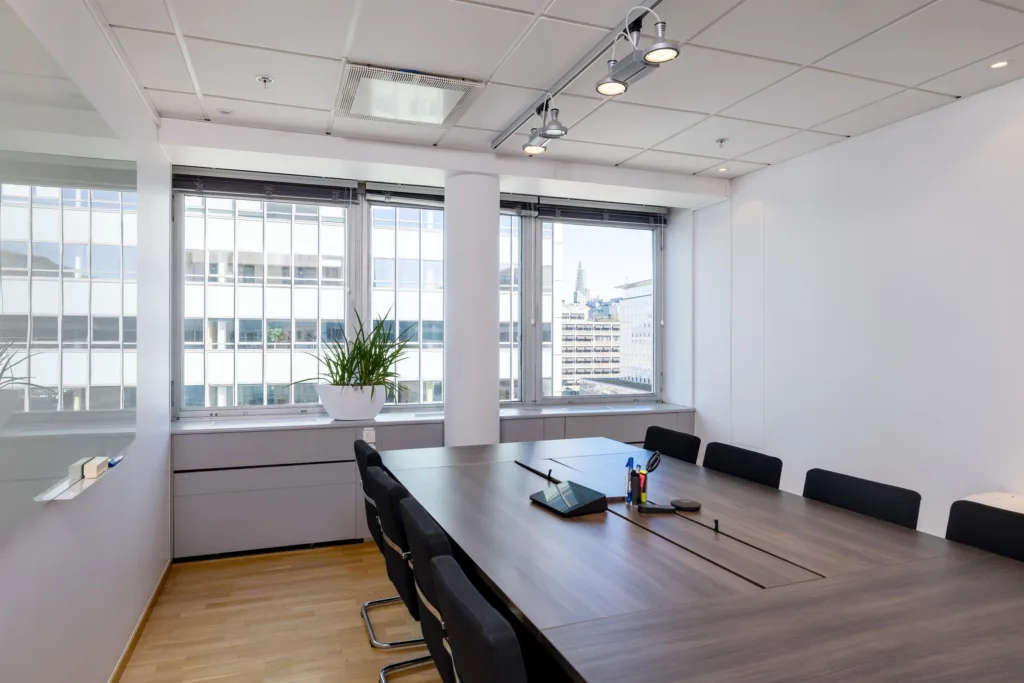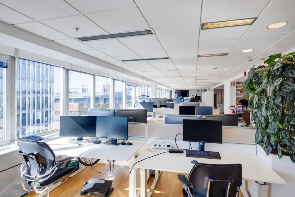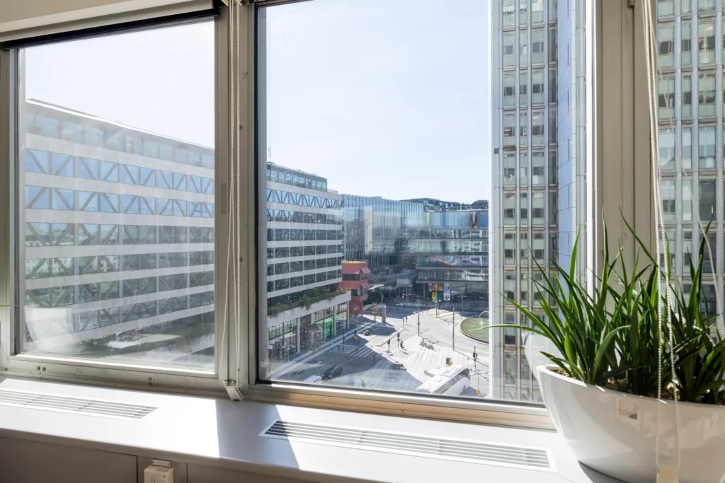 Och mitt i arbetsdagens intensiva tempo tar ni smidigt en paus på terrassen, som är en trappa ned. Där kan ni njuta av en stunds avkoppling och kanske en kopp kaffe, omgivna av stadens livliga energi.