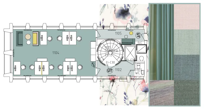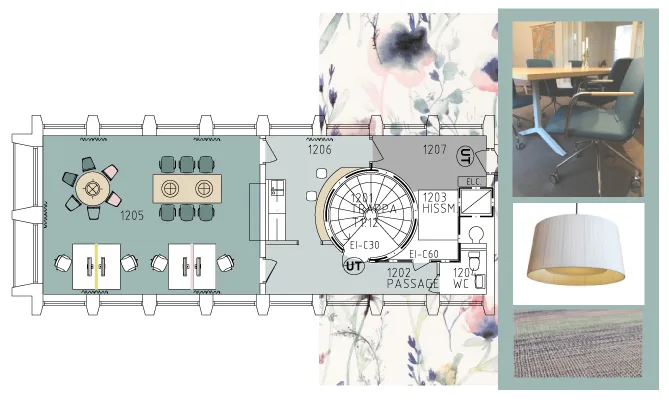 Här kliver ni in i ett snyggt, färdigmöblerat kontor där varje detalj är genomtänkt. Inredningen är modern, hållbar och varm – professionell men avslappnad. Ljuset flödar och skapar ett lugn som gör det lätt att fokusera och samarbeta.