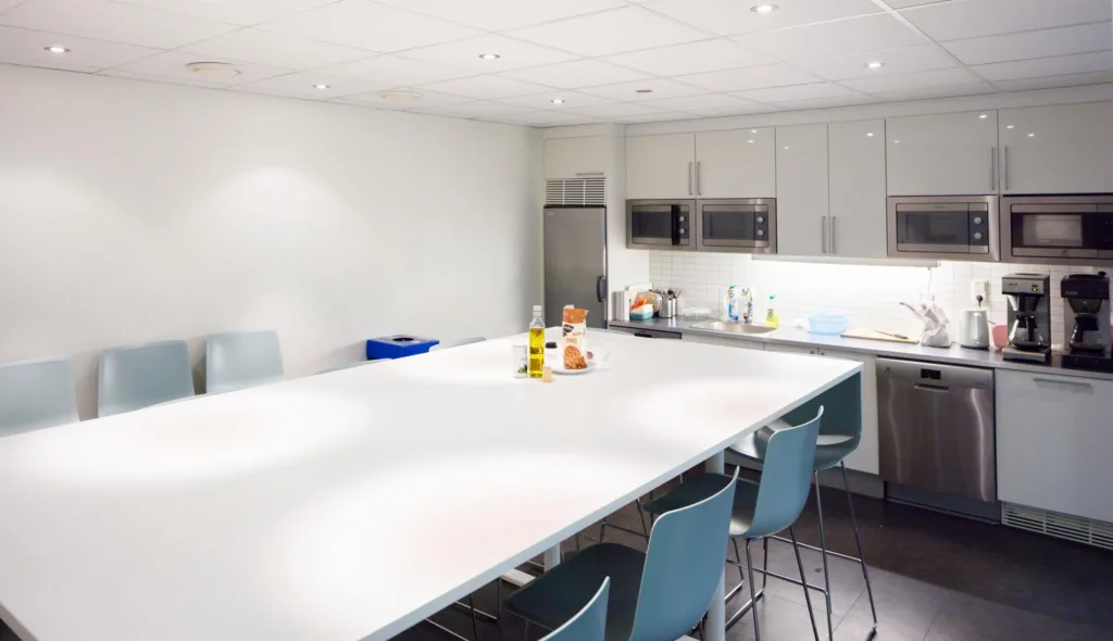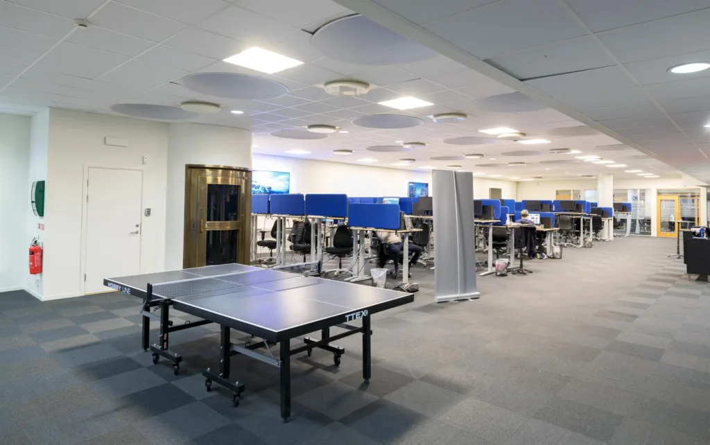 Den öppna planlösningen ger en dynamisk arbetsmiljö där samverkan och effektivitet går hand i hand. Här finns också plats för aktiva pauser mitt i arbetsdagen – kanske en omgång pingis för att få upp energin mellan mötena?