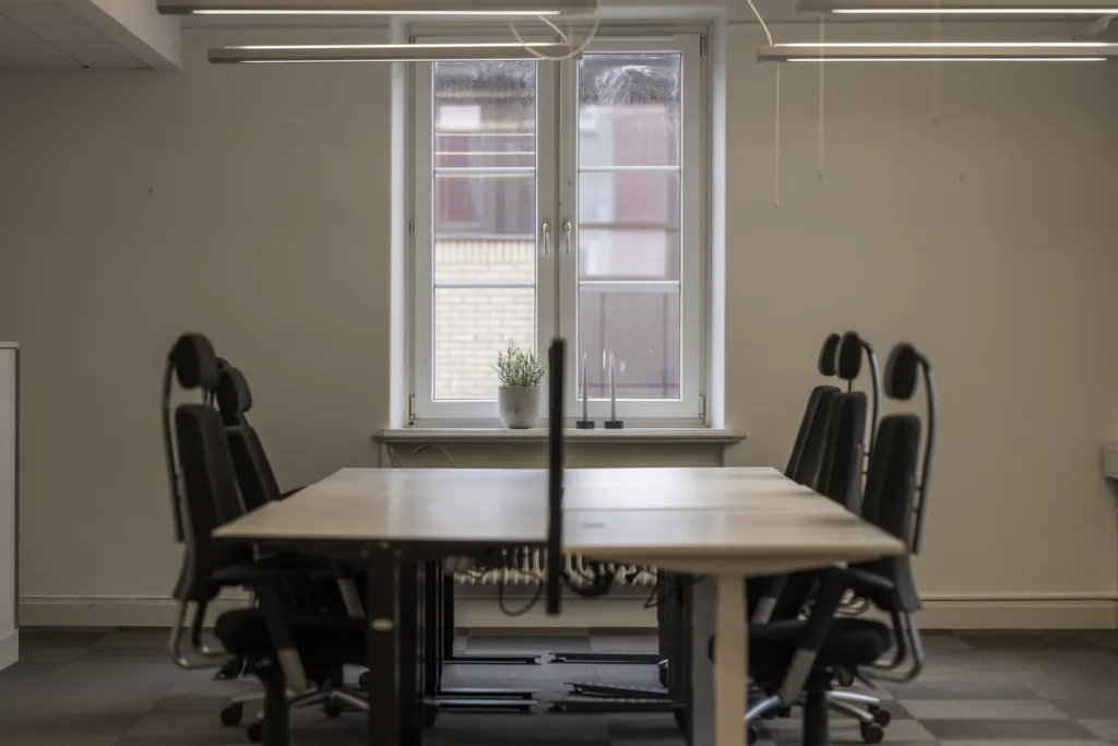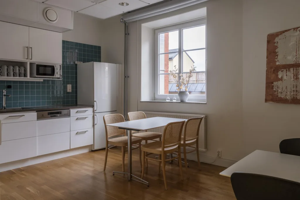 Lokalen är redan möblerad och utrustad med allt som behövs – inklusive inredning, porslin och framdragna el- och datainstallationer – vilket gör att inflyttning kan ske snabbt och smidigt direkt efter att kontraktet är påskrivet. Såklart är möblerna återvunna och renoverade. Här behöver du bara tillsätta ditt team och börja skapa!