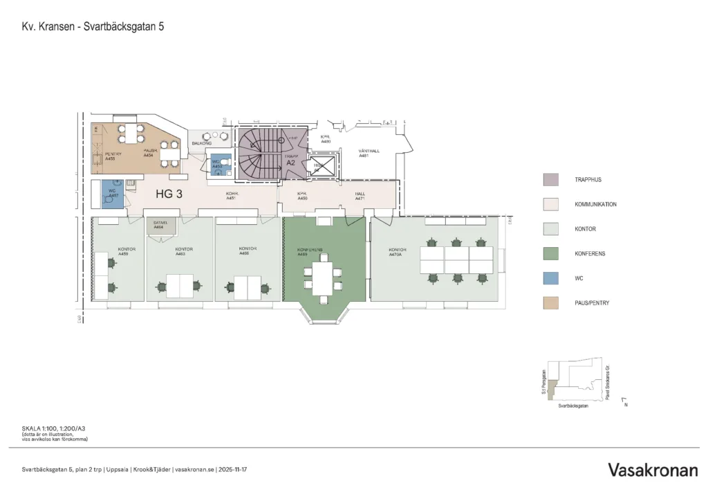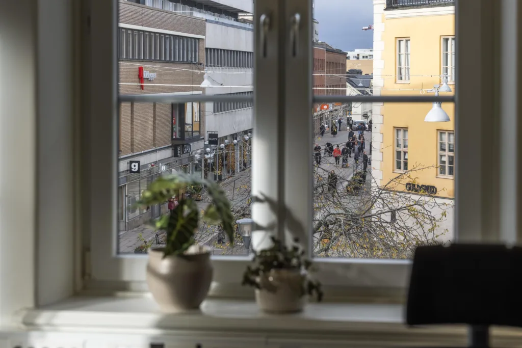 Fastigheten erbjuder ett bra skyltläge och är samtidigt smidig att hitta och ta sig till för medarbetare och kunder. I fastigheten finns ett garage där du kan parkera och ladda elbilen och cykeln kan du låsa in säkert i cykelrummet. Huset lever dygnet runt och består av butiker, bostäder och kontor. Med några hundra meter till Uppsala Centralstation/Resecentrum blir det här enkelt oavsett om ni har kunder som besöker lokalerna under dagtid eller på kvällar. Läs mer om vårt cityläge här: Uppsala city – Vasakronan.