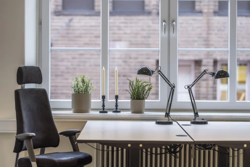Detta Smart & Klart-kontor ligger i en vacker fastighet från 1920-talet på en attraktiv adress mitt på gågatan. Det har allt du kan önska dig från ett modernt kontor samtidigt som det behåller sin charm med tidstypiska detaljer som burspråk, högt i tak och eleganta fönsterpartier.