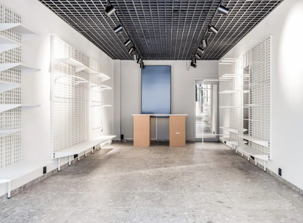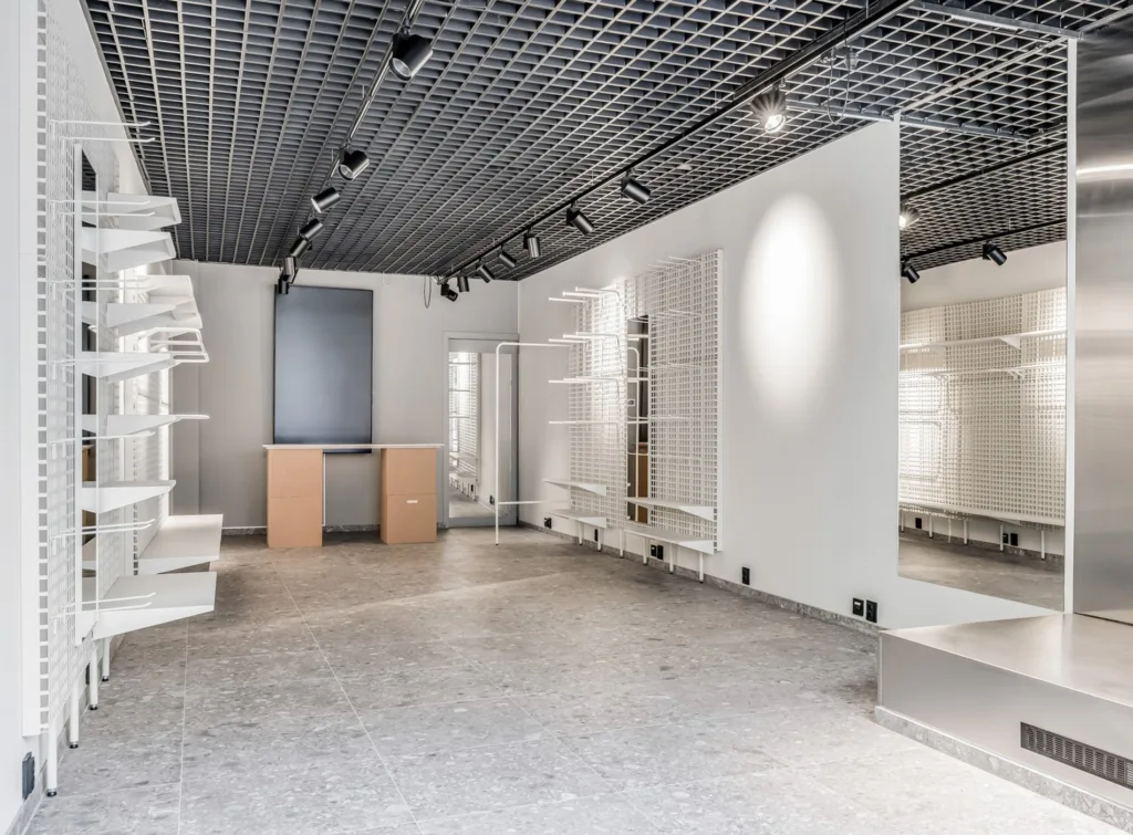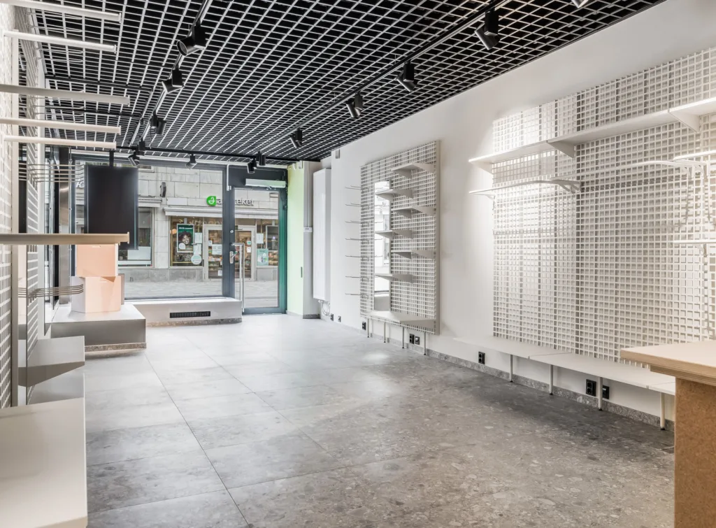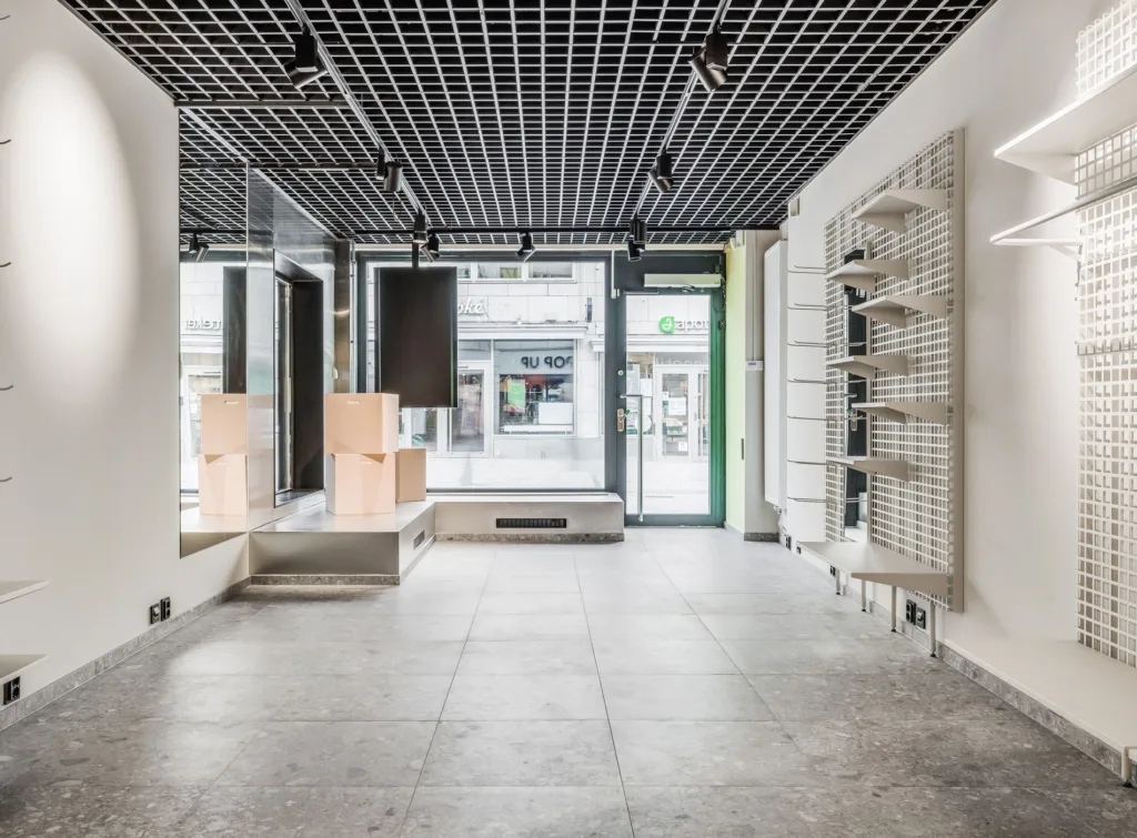 Butiken är fullt inredd, allt från inredning, hyllsystem, belysning, musik, digitala skärmar och ett basmöblemang som enkelt går att anpassa. För dig är det bara att tillföra produkter och köra igång.