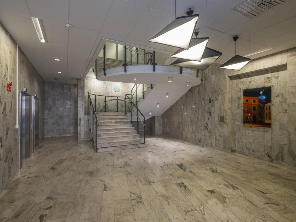 Detta kontor erbjuder en unik möjlighet för dig som söker en arbetsplats med både funktionalitet och karaktär. Lokalen ligger i ett modernt renoverat hus från slutet av 1800-talet med ett imponerande trapphus som ger en känsla av elegans direkt vid ankomst.