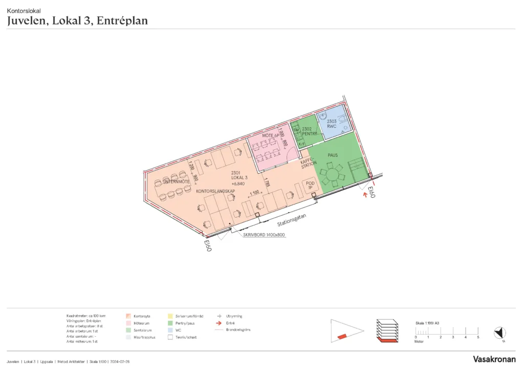 Det centrala läget gör det enkelt för både er och förbipasserande kunder att ta sig hit. Här får ni nära till allt. Tåg och bussar precis runt knuten och i grannen Uppsala Resecentrum finns restauranger, mataffär och övrig service. Dessutom har ni Uppsala Konsert & Kongress och Stora torget på bara några minuters promenadavstånd. Utanför dörren finns möjlighet till en kaffe eller lunch på någon av de små torgen eller i en solig trappa. För anställda som kommer med cykel finns cykelparkering och dusch i huset. För de som tar bilen är det smidigt att parkera i Centrumgaraget bara ett kvarter bort.