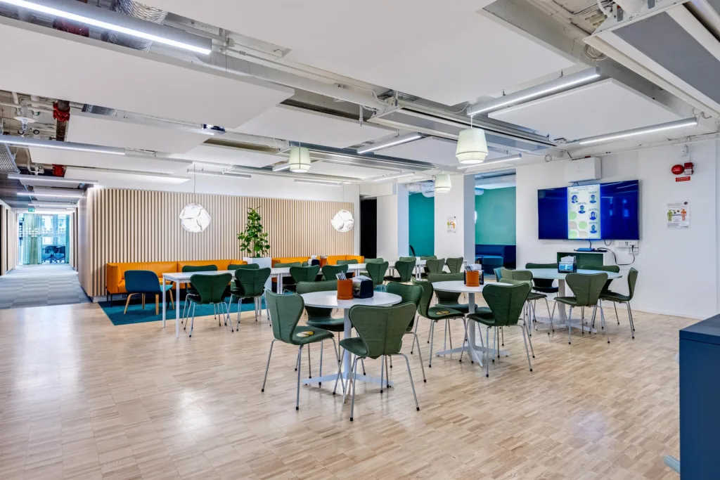 Ljusa, öppna och moderna ytor med gott om samtalsrum för telefonsamtal eller digitala möten. Här finns ett stort socialt pentry både för lunchen och för gemensamma dragningar eller event. Detta är en plats att trivas på, en samlingspunkt för era medarbetare. Lokalen är 1100 kvm per plan och kan hyras planvis eller som en helhet på 2200 kvm.