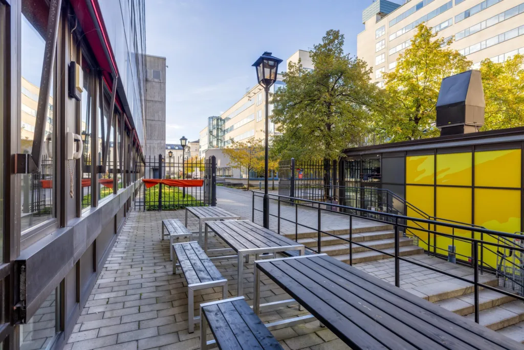 Här finns möjlighet att ta plats på någon av terrasserna för lunch eller kundevenemang, där den högst upp på taket bjuder på en slående vy över hela staden. Längre ner ligger terrassen där Bee Urban har anlagt en fantastisk stadsodling med grönska och närodlat mitt i stan. För den konstintresserade finns en unik konstsamling med över 40 stora konstverk och installationer.