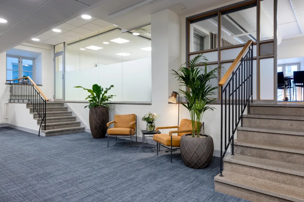 Lokalen på ca 259 kvadratmeter rymmer omkring 20 arbetsplatser. Planlösningen är smart disponerad med öppna ytor där ni kan arbeta nära varandra, kombinerat med flera kontorsrum för fokus och mötesrum i olika storlekar för allt från spontana avstämningar till viktiga kundmöten. Den representativa entrén ger ett välkomnande intryck för både medarbetare och besökare.