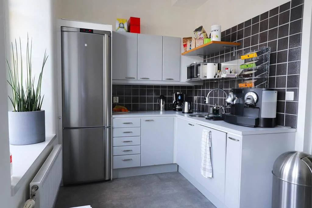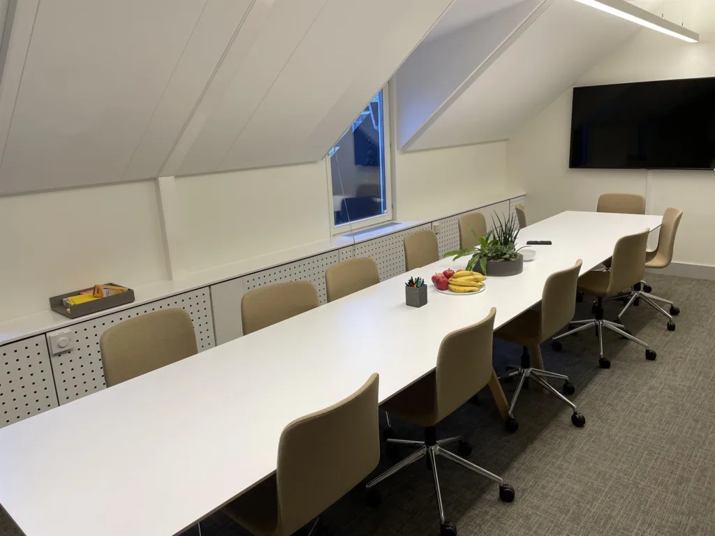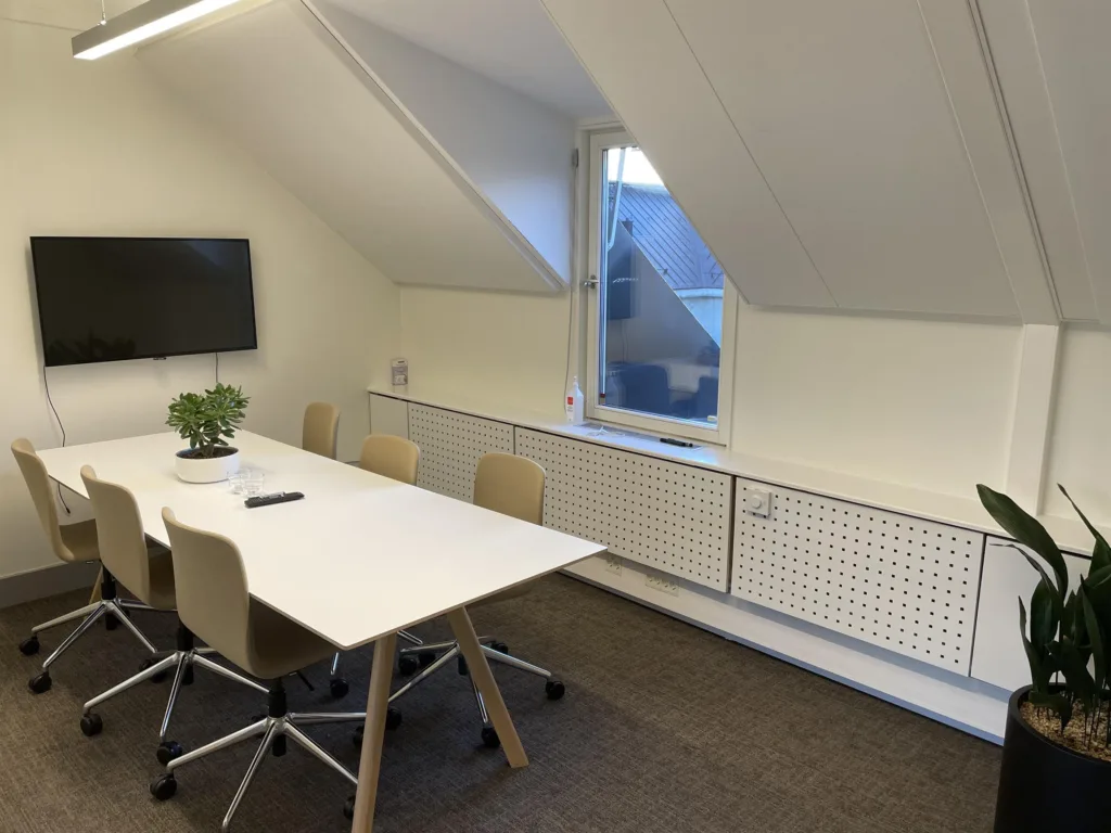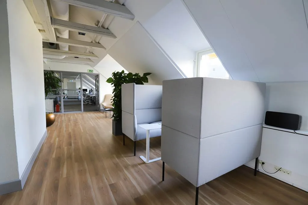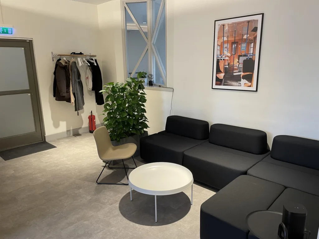 Lokalen är smart planerad för en arbetsdag som flyter. Vid entrén finns en liten lounge – en naturlig plats för att ta emot gäster, småprata med kollegor eller börja dagen med en kaffe. Intill ligger två mötesrum, perfekta för både snabba avstämningar och längre samtal.