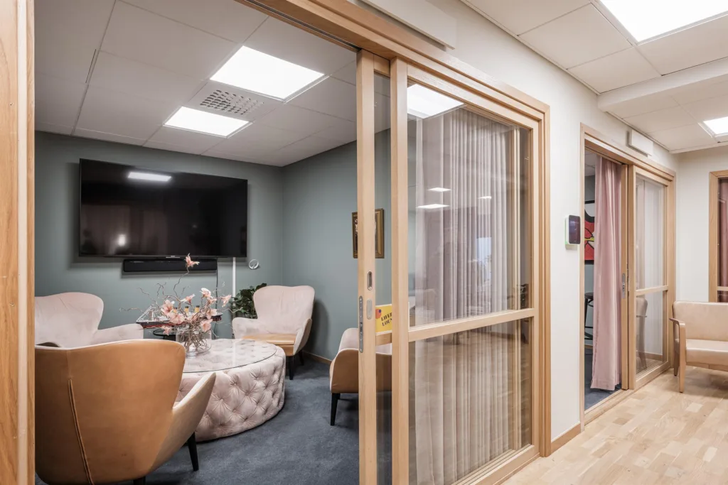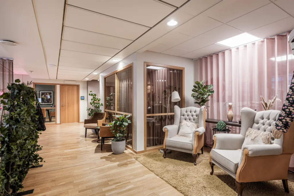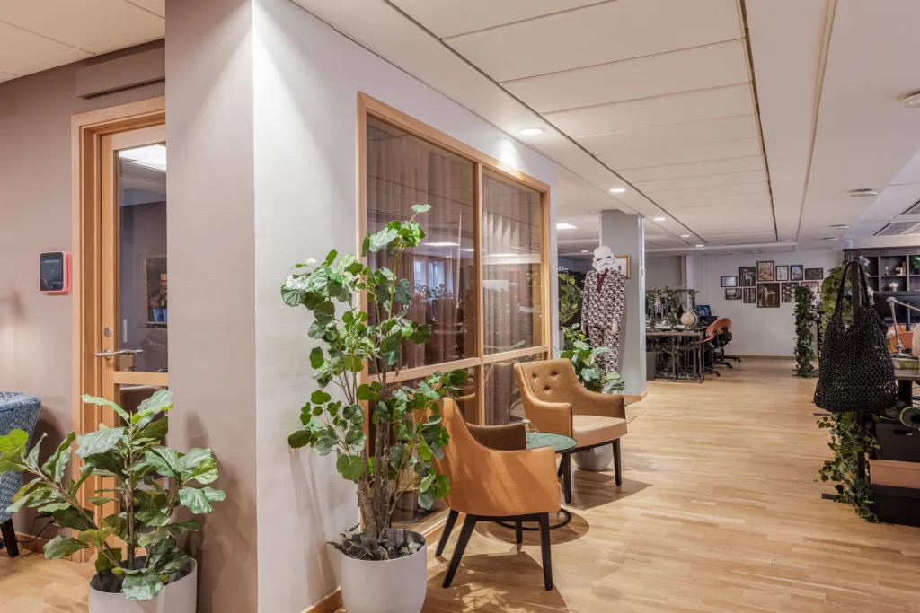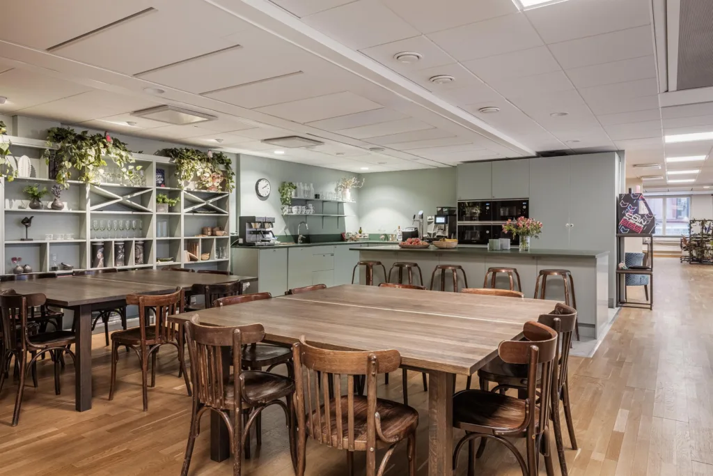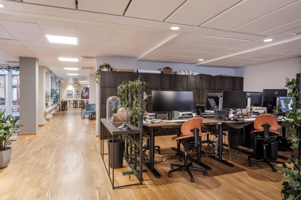 Här sitter ni på generösa 456 kvadratmeter med plats för upp till 38 arbetsplatser. Lokalen har en blandad planlösning som enkelt kan anpassas utefter era behov, samt harmoniska ytskikt av trä och jordnära toner.