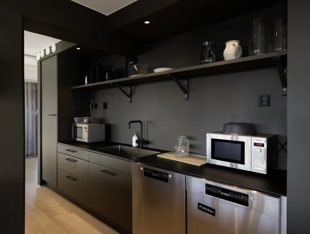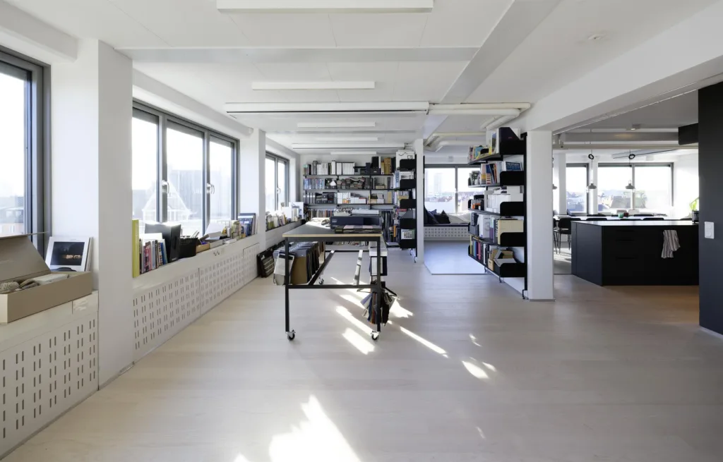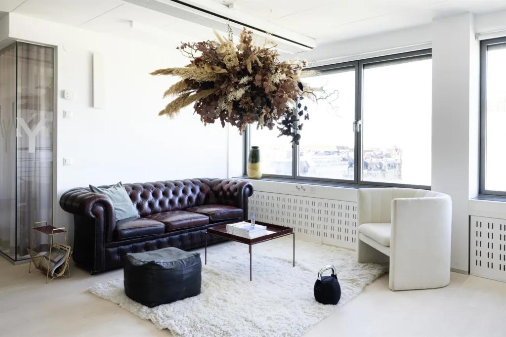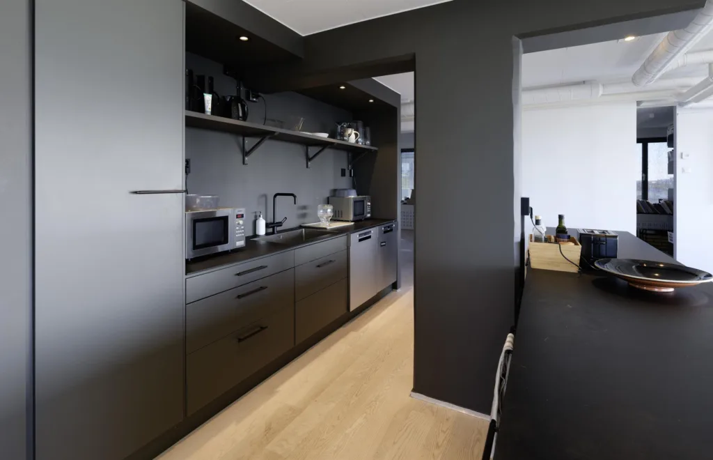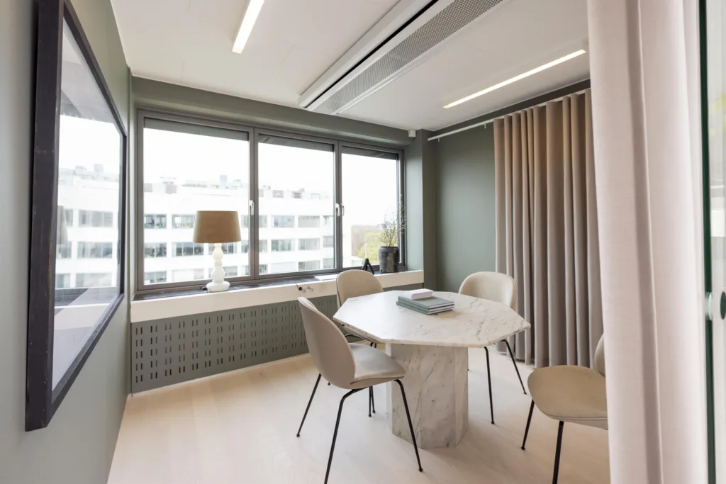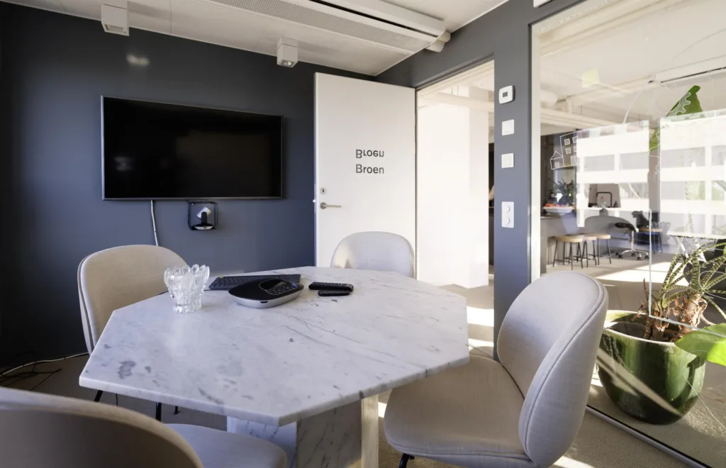 Några våningar ner i huset finns dessutom en gemensam terrass – perfekt för kaffe, paus eller ett möte i solen.