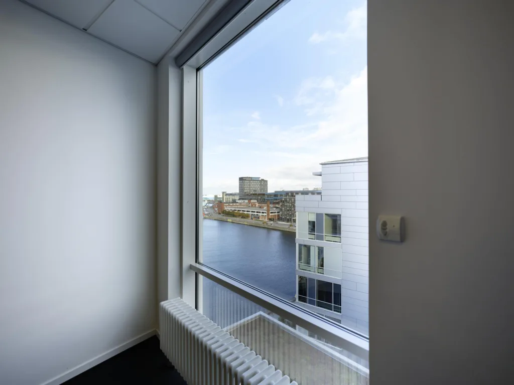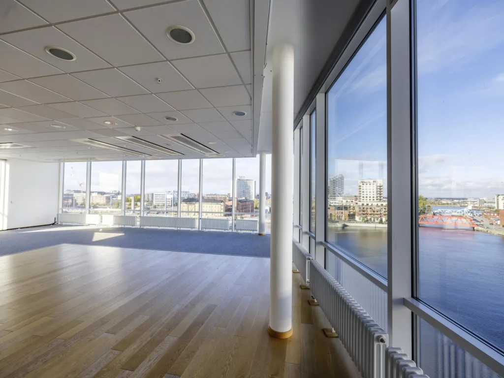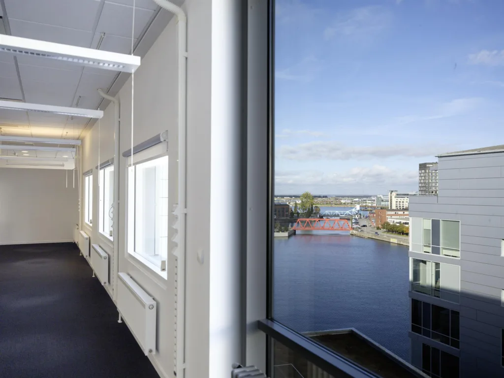 Tänk er en arbetsdag med citypulsen utanför dörren och grönskan bara några steg bort. Här, på sjunde våningen, erbjuds en ljus och öppen kontorslokal med fantastisk utsikt mot Klaffbron och nya Styrmansbron.
