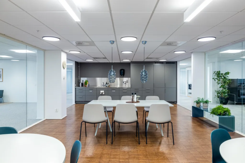 Ljust och genomtänkt. Högst upp i fastigheten möts ni av en arbetsmiljö med lugn känsla och bra flöden. De 815 kvadratmeter stora lokalerna erbjuder en välavvägd mix av öppna kontorsytor, kontorsrum samt mötes- och samtalsrum – med goda förutsättningar för både fokus och samarbete.