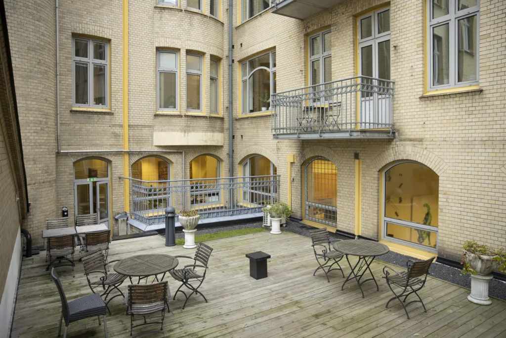 Ljusa färger, brädgolv och mycket ljusinsläpp ger lokalen en luftig känsla.