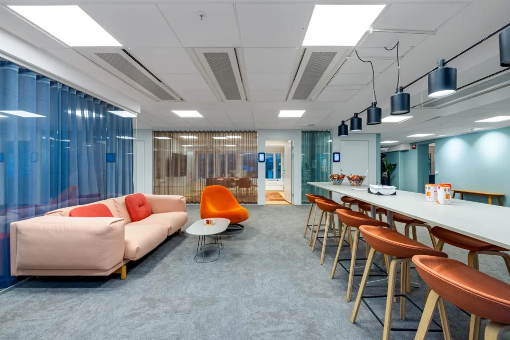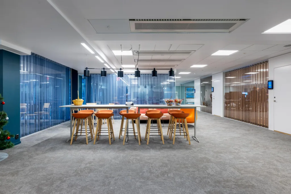 Här finns allt för en komplett arbetsdag – mötesrum för alla storlekar och lounge- och pentryutrymmen för avkoppling.
