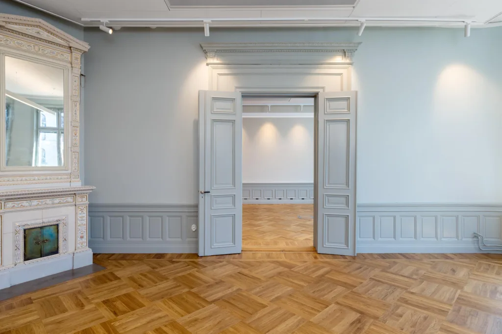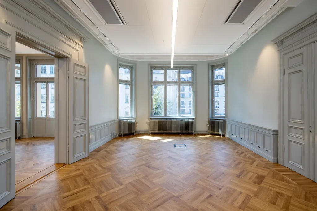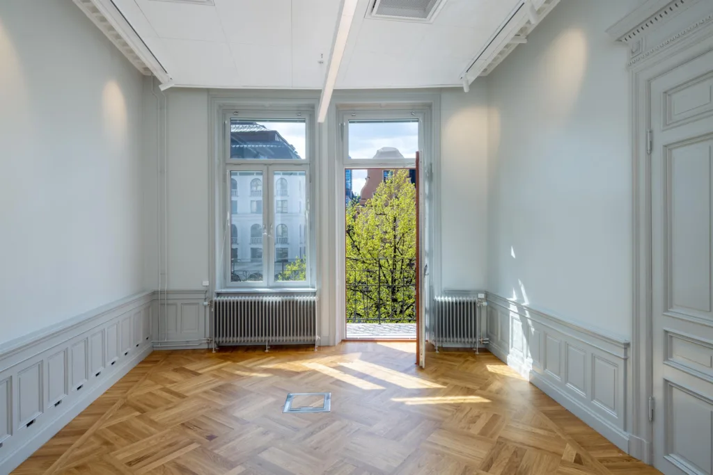 Boka en visning och upplev hur sekelskiftesdetaljer och moderna lösningar tillsammans formar ert nästa kontor.
