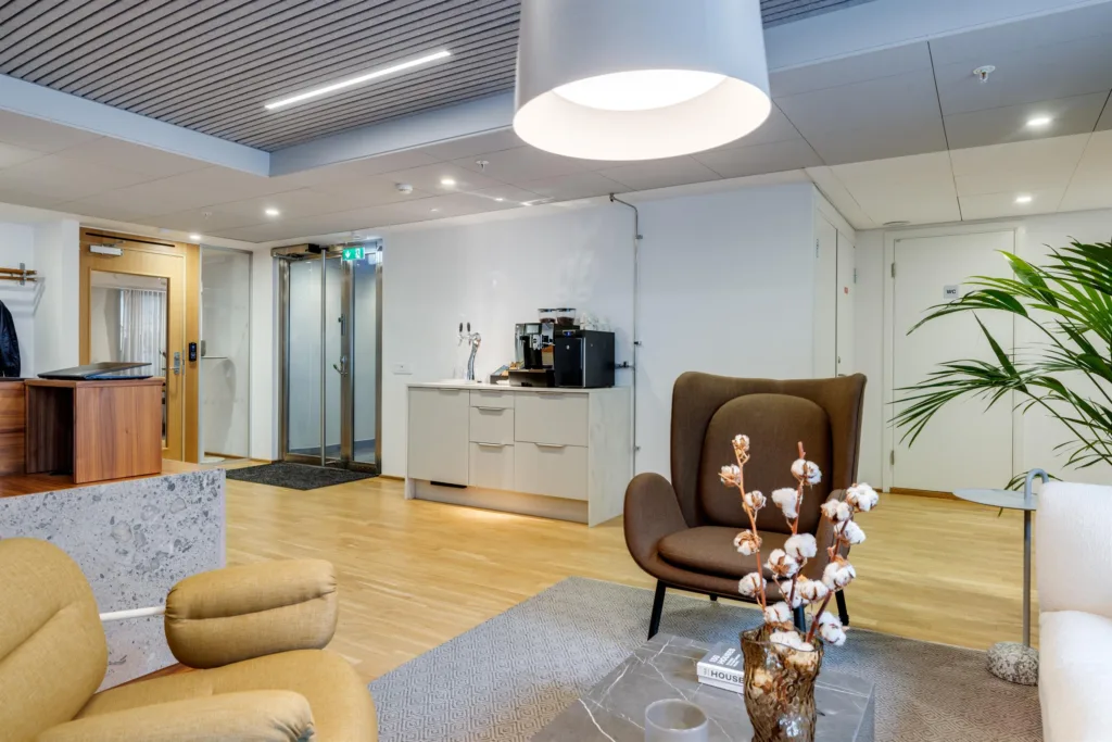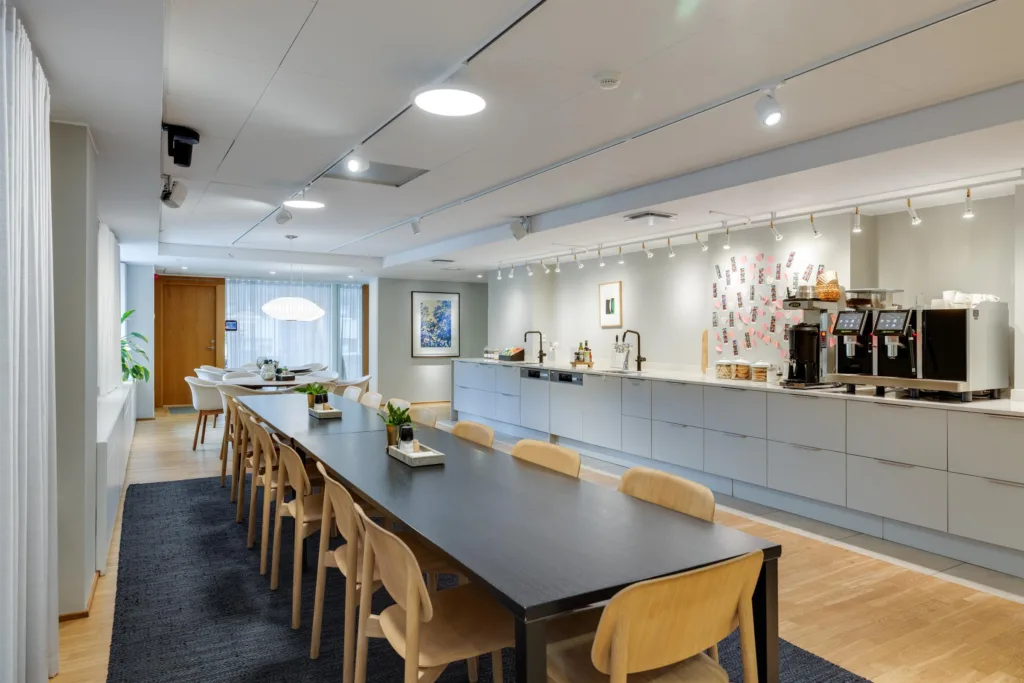 Lokalen är utformad med ett öppet kontorslandskap som kompletteras av flera mötesrum i olika storlekar, samtalsrum och projektutrymmen. Det gör ytan särskilt väl lämpad för verksamheter med hög mötesaktivitet eller team som arbetar projektbaserat. Pausytor och pentry fungerar som naturliga samlingspunkter och bidrar till en trivsam vardag.