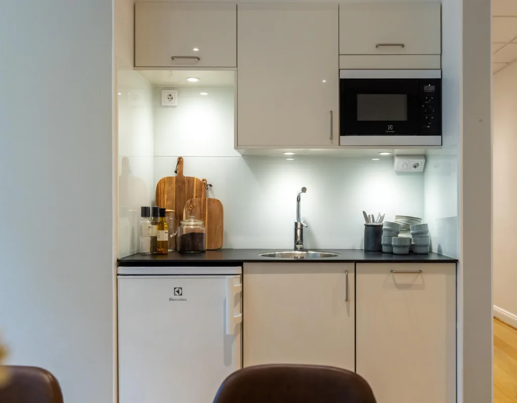 Morgonen inleds med att ni samlas över en kaffe i köket, där skratt och idéer delas innan dagen drar igång. Den gemensamma innergården inbjuder till pauser och informella möten, perfekt för att njuta av solen. Här skapas en atmosfär av gemenskap och välmående, där kollegorna kan växla tankar fritt.