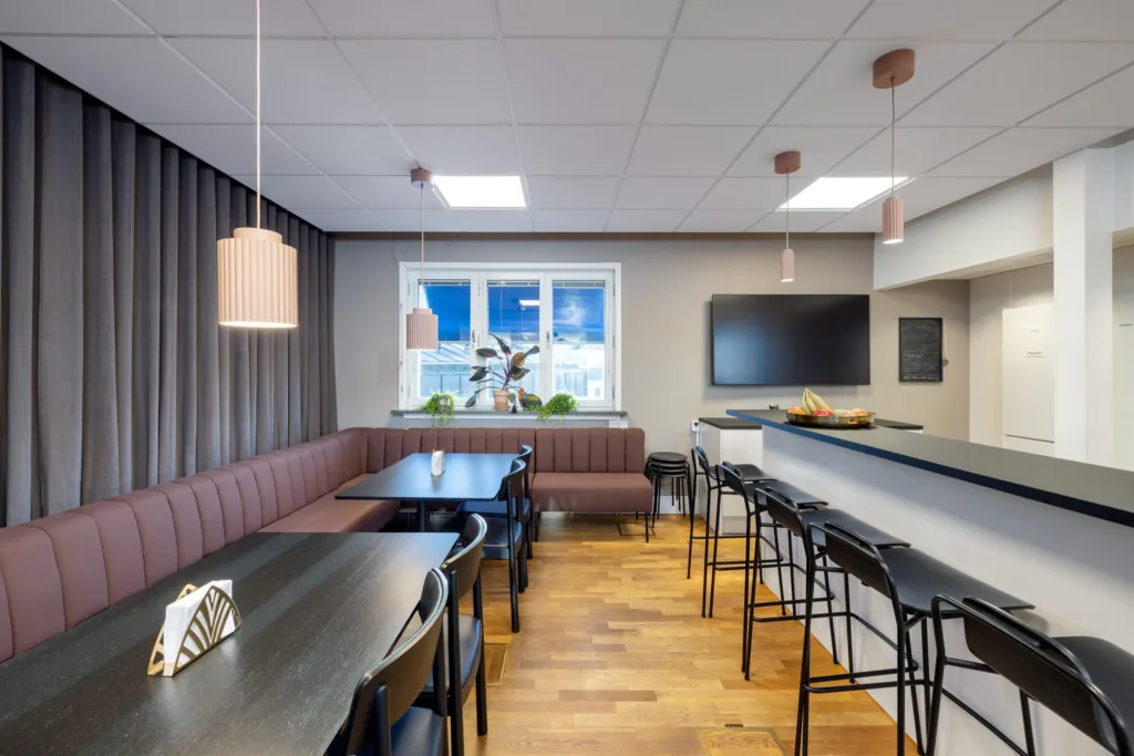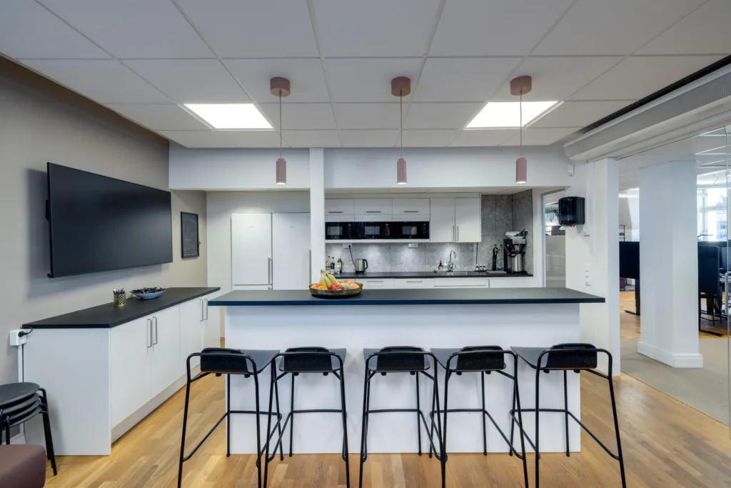 Den öppna planlösningen tillsammans med stora fönster skapar en luftig atmosfär med ett generöst ljusinsläpp. Lokalen erbjuder flera välplanerade konferensrum och samlingsytor som gör det enkelt att växla mellan samarbete, fokusarbete och kundmöten. Den effektiva utformningen ger god flexibilitet oavsett arbetsprocess.