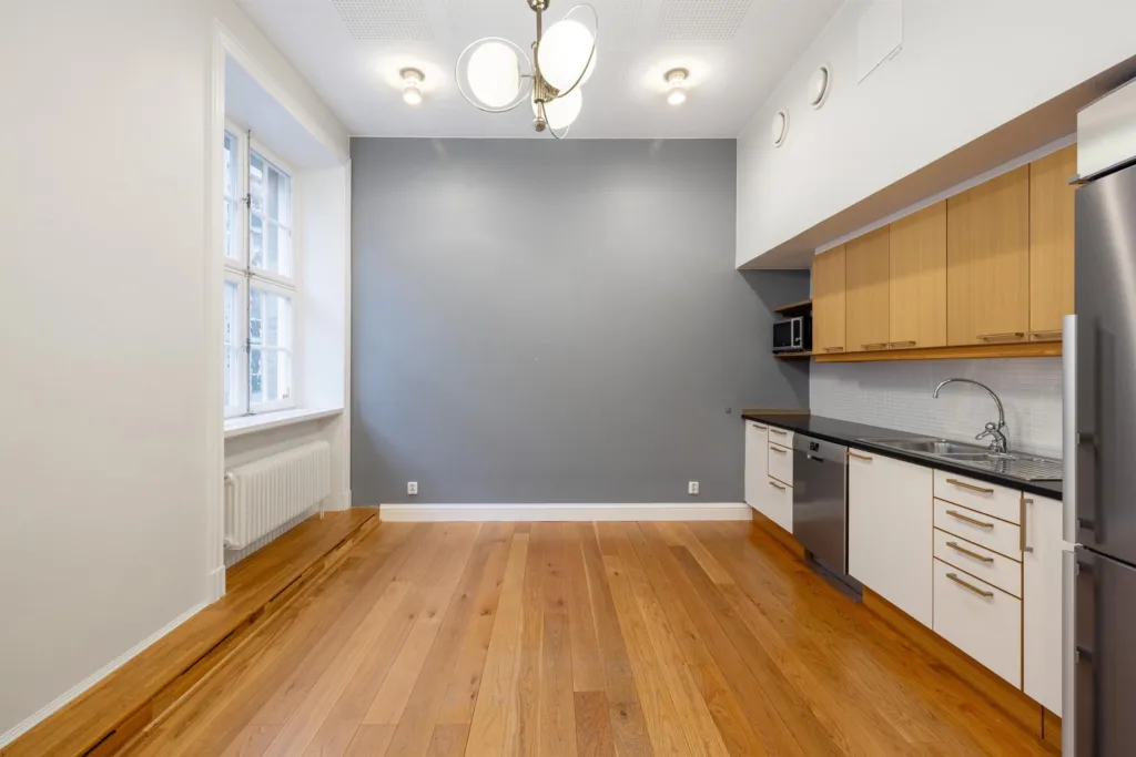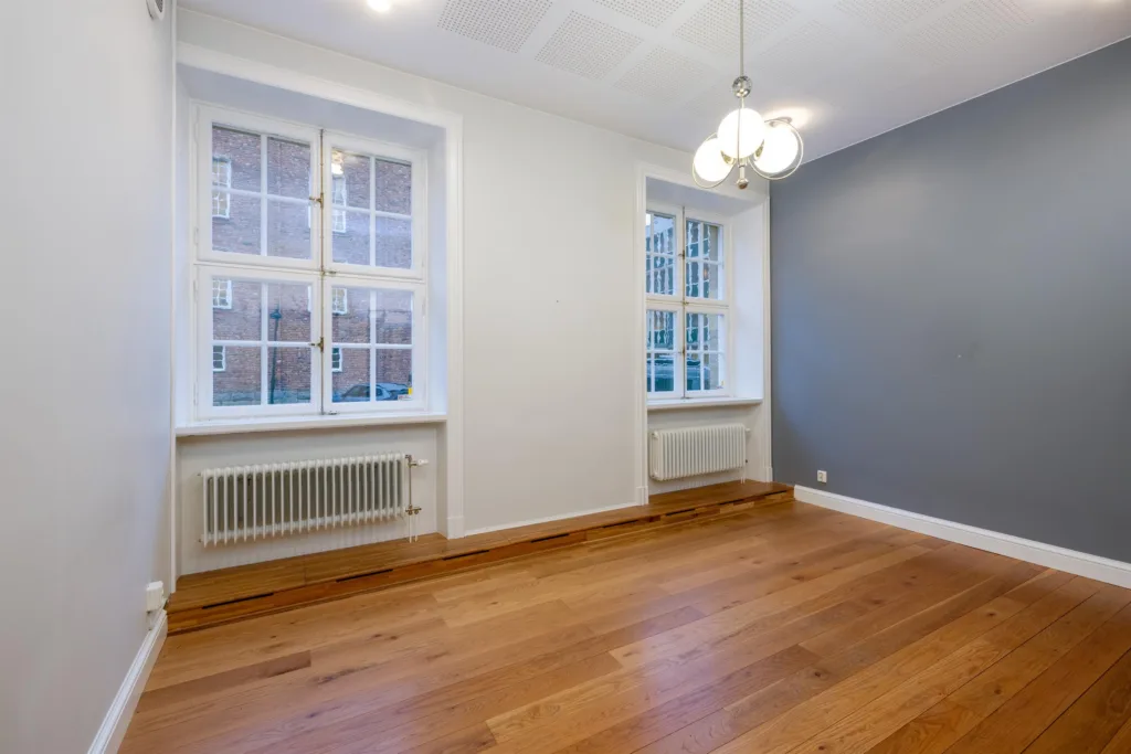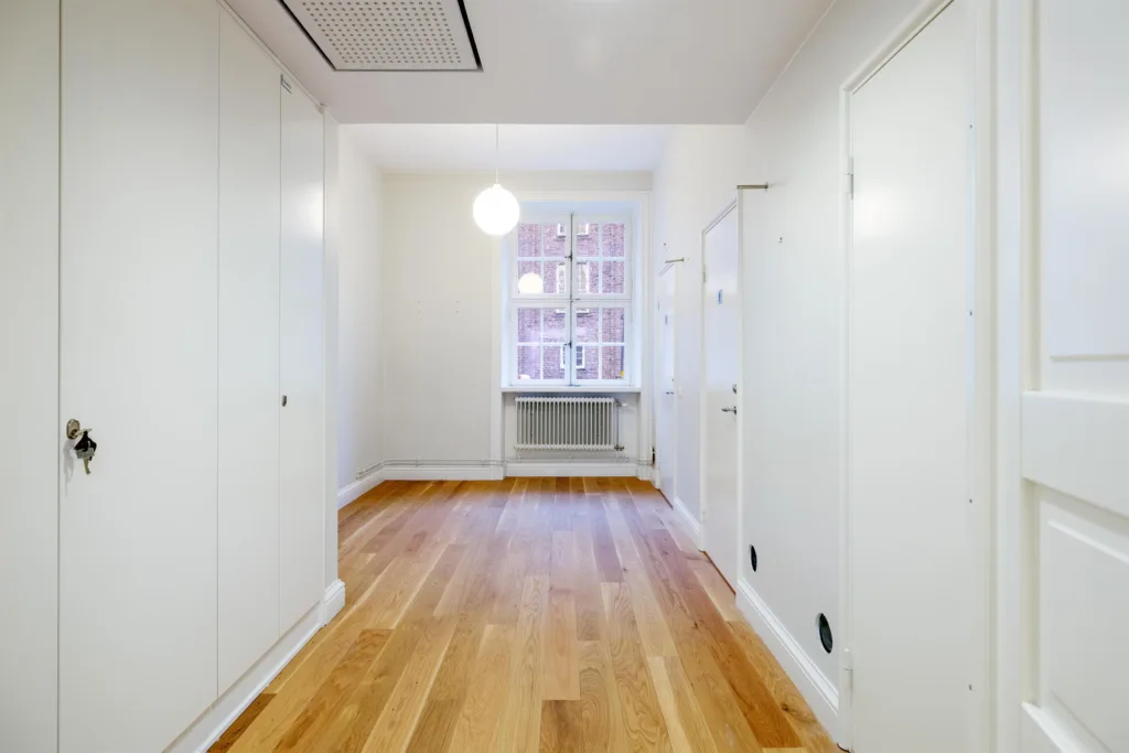 Här kan ni skapa ett representativt kontor på en behaglig adress i hjärtat av Östermalm. Lokalen har ljusa väggar, trägolv och stora spröjsade fönster som ger fina ljusinsläpp. I det luftiga rummet jobbar ni tillsammans upp till 12 kollegor. Utsikten över den fina gården ut mot Östermalmsgatan är en anledning att lyfta blicken från skärmen en stund. I pentryt finns tillräckligt med plats för att ha möten, afterwork och förstås för lunch- och kaffepauser. Förutom två WC finns duschmöjligheter. Perfekt för er som cykelpendlar eller vill ta en löptur på lunchen. Till lokalen tillhör även en källardel på 28 kvadratmeter med två förrådsrum om behovet för extrautrymme finns.