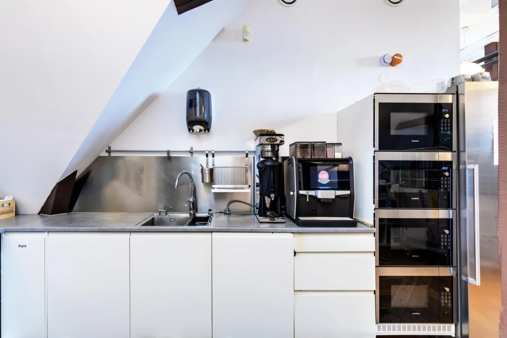 Det här kontoret är för er som trivs bäst med att arbeta i en ljus och charmig miljö med bevarade sekelskiftesdetaljer och genomgående hög standard. Lokalen har synliga bjälkar, trägolv och många fina ljusinsläpp via de vackra fönstren. Här finns möjlighet att jobba tillsammans i de större luftiga ytorna eller mer ostört i ett av kontorsrummen. Möten har ni i det trevliga köket eller i något av mötesrummen. I lokalen finns dessutom ett fullt utrustat tillagningskök som gör att det går att samlas många för möten, mingel och mat med kollegor och kunder. Ute på den fina innergården finns cykelställ och möjlighet att ta en paus.