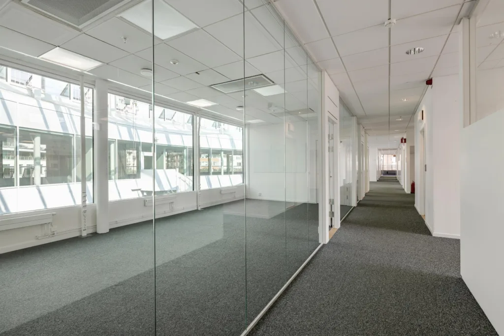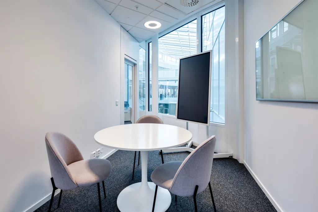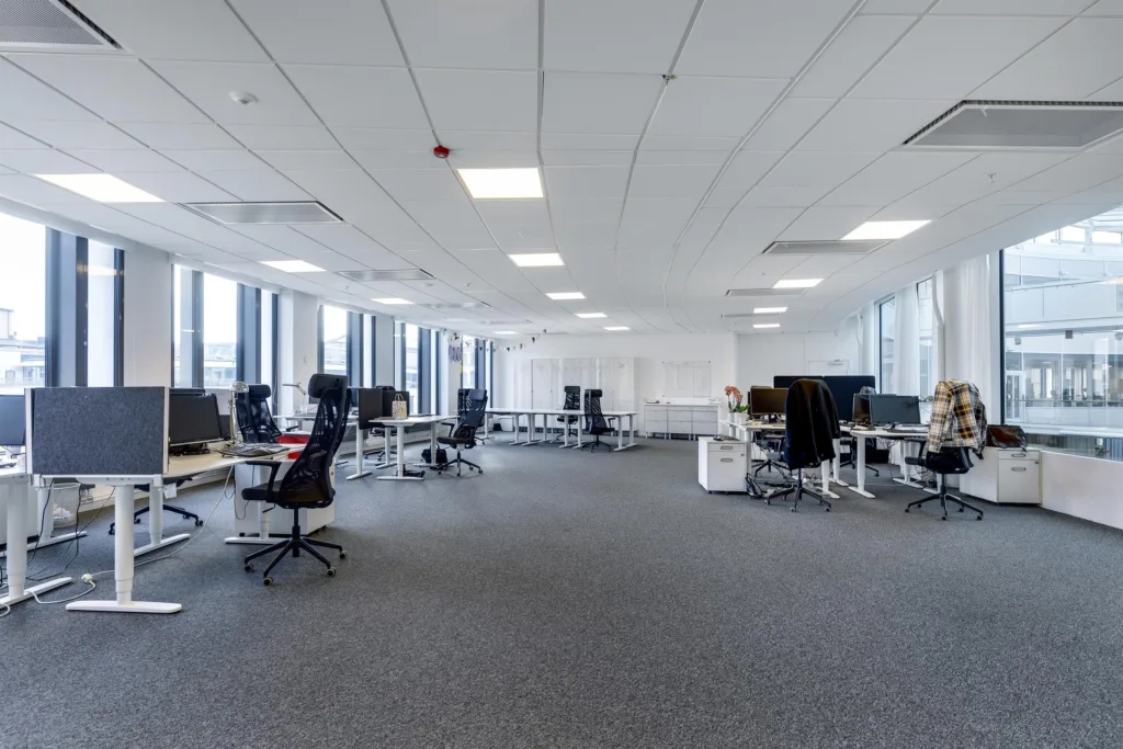 Det här kontoret är modernt och unikt med en bågformad fantastisk terrass som följer längs hela lokalen. Ytorna är ljusa i vitt och grått och har härliga ljusinsläpp via många och stora fönster. Dessa 845 kvadratmeter fördelas på öppna kontorslandskap, flera separata kontorsrum, sociala ytor och ett rymligt pentry. Här får upp till 80 kollegor möjlighet att arbeta på ett flexibelt sätt beroende på arbetsuppgifter och projekt. Närheten till både tunnelbana, SATS gym, shopping och grönområden, gör läget attraktivt. Karlaplan med köpcentrumet Fältöversten ligger bara några minuter bort, t-banestation Stadion finns i stort sätt utanför dörren och bara en bit bort ligger Humlegården och grönområdet Gärdet där jogging, lunch, en skidtur på vintern eller ett promenadmöte balanserar upp vardagens stress.